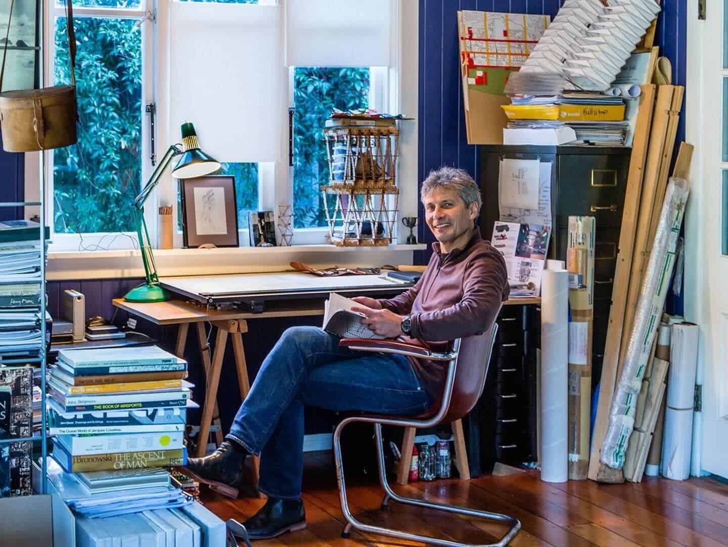 His invention of the Click Raft structural system grew out of this inquiry, as did his sustained engagement with what he terms the “bent universe”: the idea that curvilinear geometries are fundamentally more efficient and structurally honest than the straight-line forms that dominate industrial construction. Most recently, he appeared on the New Zealand version of the television series Grand Designs.